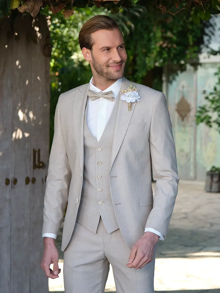 Ideal für Sommerhochzeiten und legere Veranstaltungen, bieten unsere Leinenanzüge für Herren eine herausragende Passform und außergewöhnlichen Komfort. Ob als zweiteiliger Anzug oder mit einem separaten Sakko kombiniert – diese Anzüge heben deine natürliche Ausstrahlung hervor und verleihen dir ein Gefühl von einzigartiger Lässigkeit und Exklusivität.